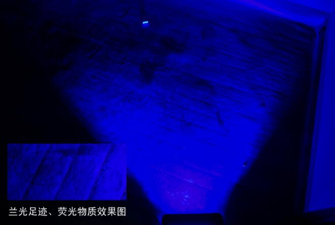 双波段LED可变光宽幅足迹搜索光源,采用大功率LED冷光源,前置有广角扁平光光学系统。出射光型为扁平光,出光口50cm处矩形光照面宽为80cm掠射地面,非常清晰显现地面痕迹,获得高反差痕迹采证图像。该产品具有扁平光光型的光学性能之外,整体结构设计轻巧、简洁。采用轻质铝合金壳体结构,耐摔耐碰,便于清洗污秽与消毒。内置>1.5小时持续照明可充电池,也可以外接电源照明。设计风冷装置,更体现出该产品的实战和专业性能, 广泛用于对现场血液、精斑、指纹、足印、痕迹、荧光物质等生物物证的快速搜索。