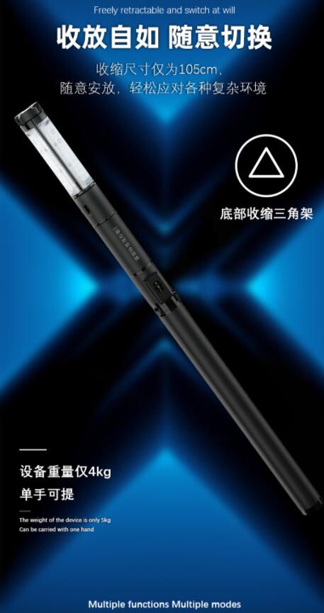 功能:设备具有泛光照明、红蓝灯警示功能,并可以遥控控制设备功能模式切换