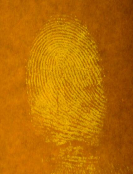 2、 由于红外光是不可见光,复杂背景呈黑色,背景完全被滤除。适合于显现复杂背景上的指纹。